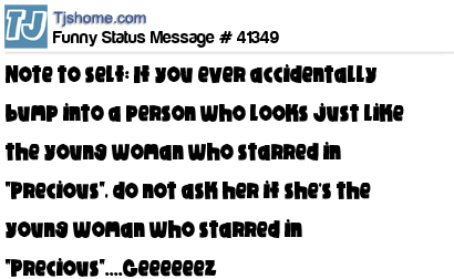 X is Note to self: If you ever accidentally bump into a person who looks just like the young woman who starred in "Precious", do not ask her if she's the young woman who starred in "Precious"....Geeeeeez