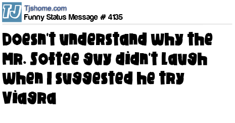 X Doesn't understand why the Mr. Softee guy didn't laugh when I suggested he try Viagra