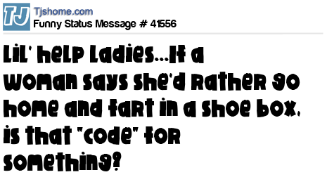 X Lil' help ladies...If a woman says she'd rather go home and fart in a shoe box, is that "code" for something?