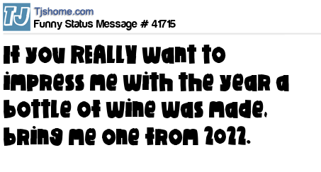 - # 99818 People who bring a bottle of wine to your house really want you to see that they are people who brought a bottle of wine to your house.