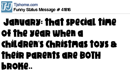 - # 12958 January: that special time of the year when a children's Xmas toys & his parents are BOTH broke.