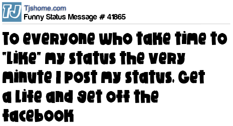 X is To everyone who take time to "Like" my status the very minute I post my status, Get a life and get off the facebook