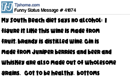X is My South Beach diet says no alcohol: I figure it like this wine is made from fruit, brandy is distilled wine, Gin is made from juniper berries and beer and whiskey are also made out of wholesome grains. Got to be healthy, bottoms up!