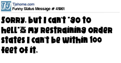 X is sorry, but I can't "go to hell"~ my restraining order states I can't be within 100 feet of it.