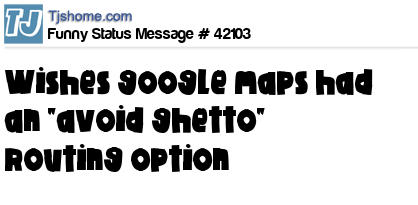 - # 28011 I wish Google Maps had an "Avoid Ghetto" routing option.