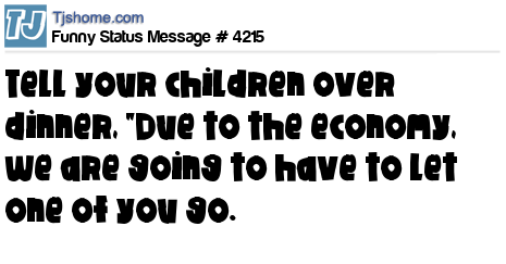 - # 106411 Try this: Tell your children over dinner, ''Due to the Economy,We are going to have to let one of you go!!!