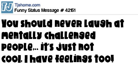 X is You should never laugh at mentally challenged people,.. it's just not cooI, I have feelings too!