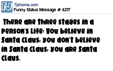 - # 80684 There are four stages of life; 1) You believe in Santa Claus. 2) You don't believe in Santa Claus. 3) You are Santa Claus. 4) You look like Santa Claus.