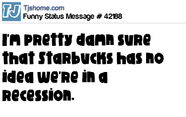 - # 20869 pretty damn sure that Starbucks clearly has no idea we're in a recession.