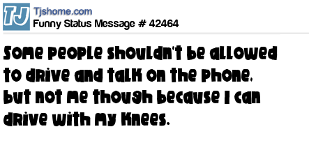 X Some people shouldn't be allowed to drive and talk on the phone, but not me though because I can drive with my knees.