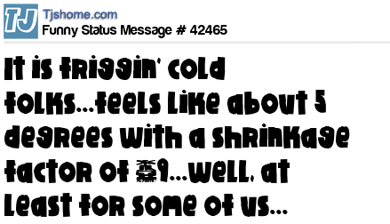 - # 122281 Major cold front heading our way with significant wind chills... shrinkage is imminent