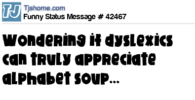 X is wondering if dyslexics can truly appreciate alphabet soup...
