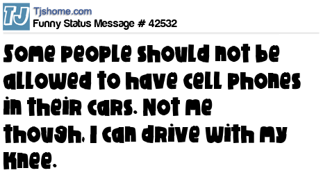 - # 42464 Some people shouldn't be allowed to drive and talk on the phone, but not me though because I can drive with my knees.