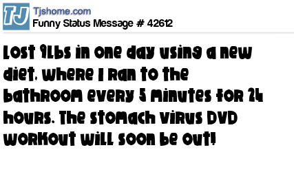X is Lost 9lbs in one day using a new diet, where I ran to the bathroom every 5 minutes for 24 hours. The stomach virus DVD workout will soon be out!