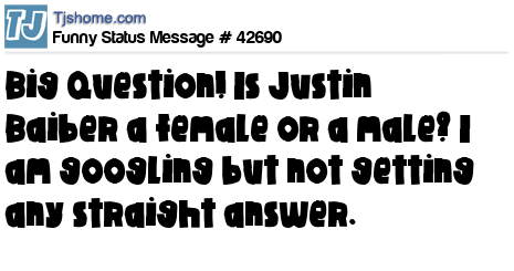 X Big Question! Is Justin Baiber a female or a male? I am googling but not getting any straight answer.
