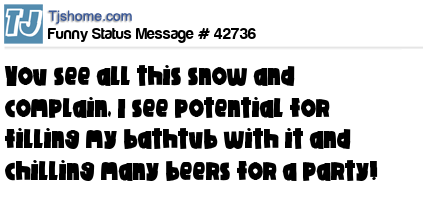 X You see all this snow and complain, I see potential for filling my bathtub with it and chilling many beers for a party!