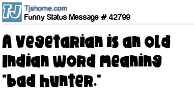 - # 143196 Vegetarian: An old Indian word meaning "lousy hunter." Vegan: An old Indian word meaning "really lousy hunter."