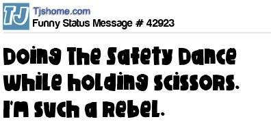 X is doing The Safety Dance while holding scissors. I'm such a rebel.