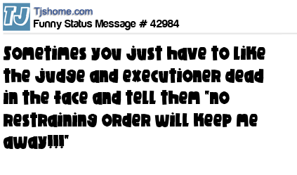X says sometimes you just have to like the judge and executioner dead in the face and tell them "no restraining order will keep me away!!!"