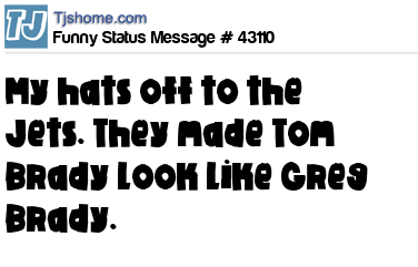X My hats off to the Jets. They made Tom Brady look like Greg Brady.