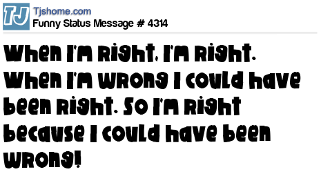 X when I'm right, I'm right. When I'm wrong I could have been right. So I'm right because I could have been wrong!