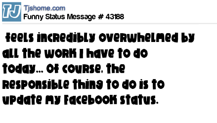 X feels incredibly overwhelmed by all the work I have to do today... Of course, the responsible thing to do is to update my Facebook status.