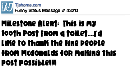 - # 37284 Milestone Alert: This is my 100th Post From a toilet....I'd like to thank the fine people from Mcdonalds for making this post possible!!!