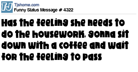 X is has the feeling she needs to do the housework, gonna sit down with a coffee and wait for the feeling to pass