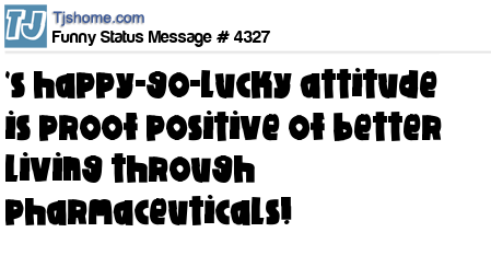 X 's happy-go-lucky attitude is proof positive of better living through pharmaceuticals!