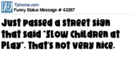 - # 179167 They put up signs on my street for "Slow Children." I knew these kids were stupid but damn, do they really need to advertise it????