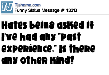 X hates being asked if I've had any "past experience." Is there any other kind?