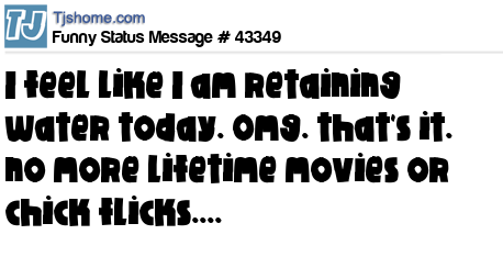 X is I feel like I am retaining water today. Omg. that's it. no more lifetime movies or chick flicks....