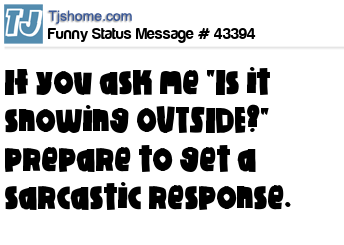 X If you ask me "Is it snowing OUTSIDE?" prepare to get a sarcastic response.