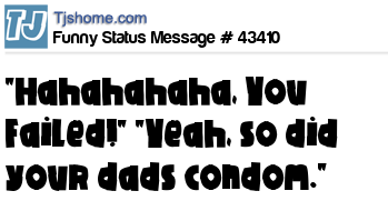 X is "Hahahahaha, You Failed!" "Yeah, so did your dads condom."