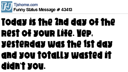 X Today is the 2nd day of the rest of your life. Yep, yesterday was the 1st day and you totally wasted it didn't you.