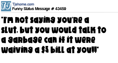 X "I'm not saying you're a slut, but you would talk to a garbage can if it were waiving a $5 bill at you!!"