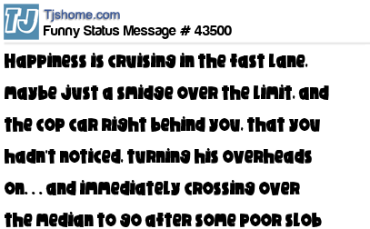- # 35215 Happiness is a cop car turning his lights on behind you and immediately going past you.