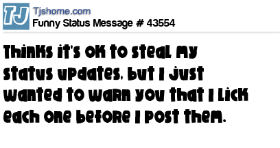 - # 174530 You can steal my status updates but you should know I lick every one of them before I post them.