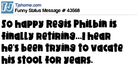X So happy Regis Philbin is finally retiring...I hear he's been trying to vacate his stool for years.