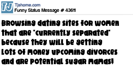 X is browsing dating sites for women that are "currently separated" because they will be getting lots of money upcoming divorces and are potential sugar mamas!