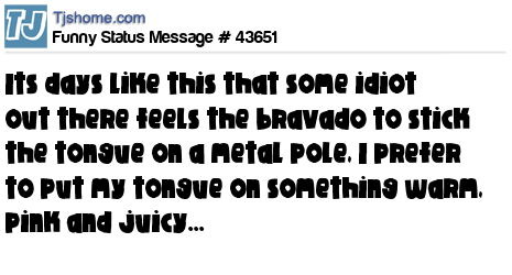 X is its days like this that some idiot out there feels the bravado to stick the tongue on a metal pole, I prefer to put my tongue on something warm, pink and juicy...