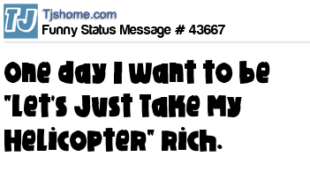 X One day I want to be "Let's Just Take My Helicopter" rich.