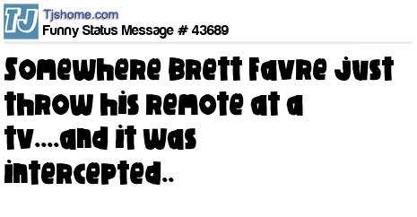 X says Somewhere Brett Favre just throw his remote at a tv....and it was intercepted..