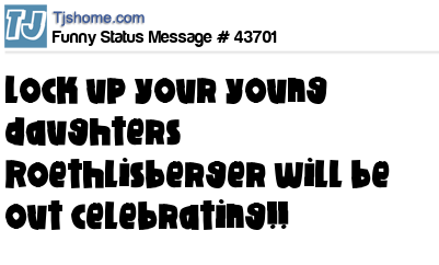X is Lock up your young daughters Roethlisberger will be out celebrating!!