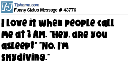 X I love it when people call me at 3 AM. "Hey, are you asleep?" "No, I'm skydiving."