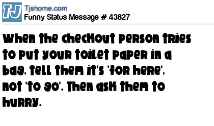 - # 129539 When the checkout person tries to put your toilet paper in a bag, tell them it's 'for here', not 'to go'.