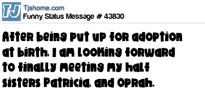 X says after being put up for adoption at birth, I am looking forward to finally meeting my half sisters Patricia, and Oprah.