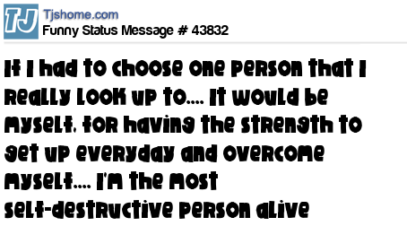 X says If I had to choose one person that I really look up to.... It would be myself, for having the strength to get up everyday and overcome myself.... I'm the most self-destructive person alive