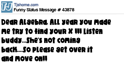 - # 98824 Dear Algebra, stop asking us to find your X, she's not coming back.