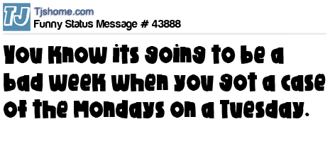 X You know its going to be a bad week when you got a case of the Mondays on a Tuesday.